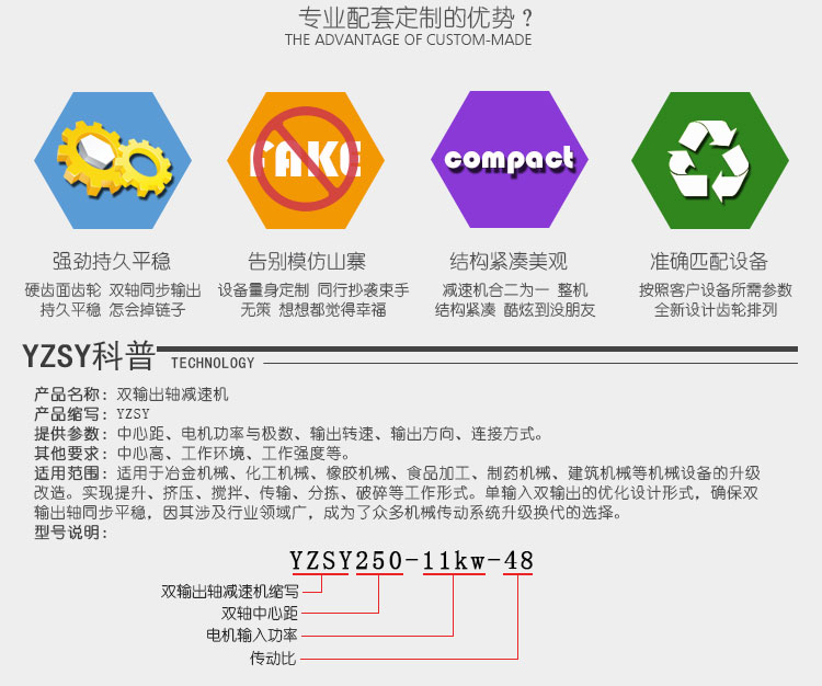 本期小編給大家推薦一款小型的雙輸出減速機:YZSY200-4kw-4p-48。